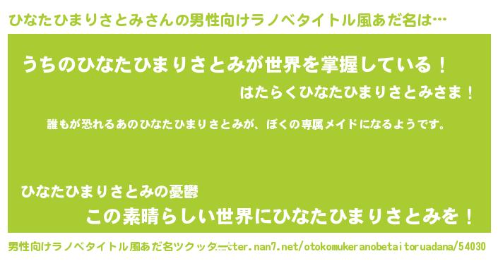 | ヘコむあだ名 | 『ひなたひまりさとみ(遠い目)』『ひなにー』 |
