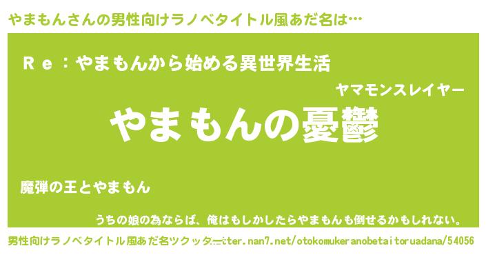 | 女子向けラノベタイトル風あだ名 | 『(仮)やまもんのやんごとなき事情』 |