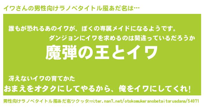 | 女子向けラノベタイトル風あだ名 | 『乙女ゲームの破滅フラグしかない悪役イワに転生してしまった…』 |