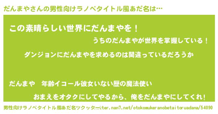 | 胡散臭い通販商品みたいなあだ名 | 『信頼と実績のサプリメント…その名も「だんまや」』 |