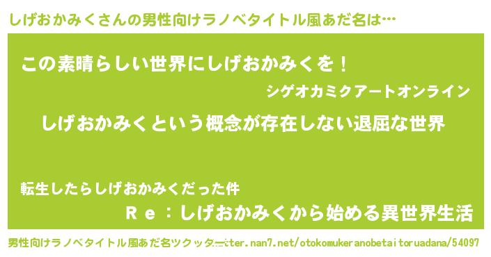 | 意味不明あだ名 | 『永久保存しげおかみく』 |
