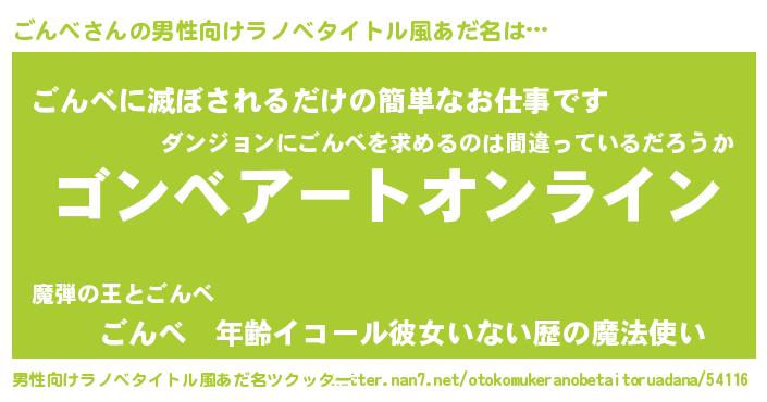 | 女子向けラノベタイトル風あだ名 | 『ごんべ姫と円卓の騎士』 |