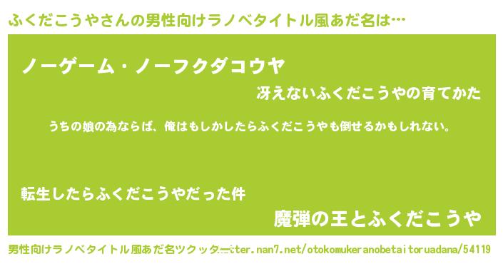 | 女子向けラノベタイトル風あだ名 | 『ふくだこうや伯爵の花嫁』 |