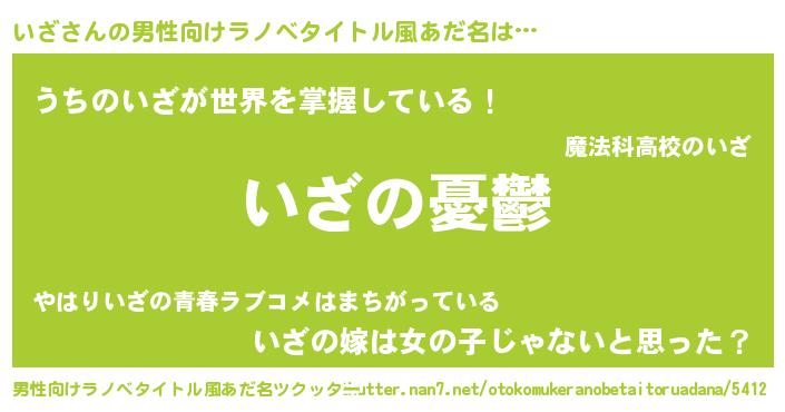| 女子向けラノベタイトル風あだ名 | 『(仮)いざのやんごとなき事情』 |