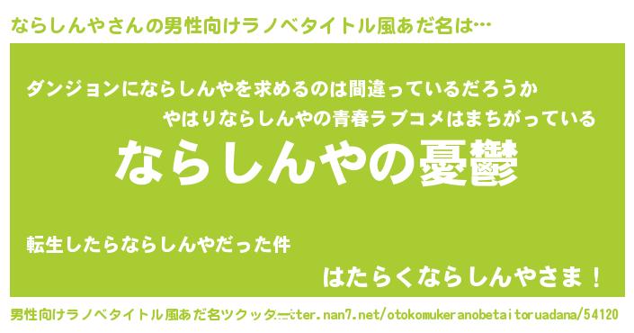 | 女子向けラノベタイトル風あだ名 | 『ならしんや姫と円卓の騎士』 |