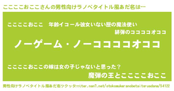 | 伝説のあだ名 | 『救世主となる錬金術士ここここおここ』 |