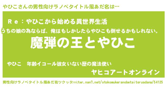 | 意味不明あだ名 | 『住所不定無職やひこ(8歳)』『自称やひこ』 |