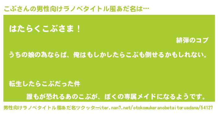 | 女子向けラノベタイトル風あだ名 | 『こぶの婚約者』『首の姫と首なしこぶ』 |