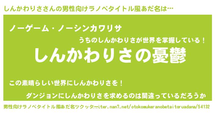 | 女子向けラノベタイトル風あだ名 | 『(仮)しんかわりさのやんごとなき事情』 |