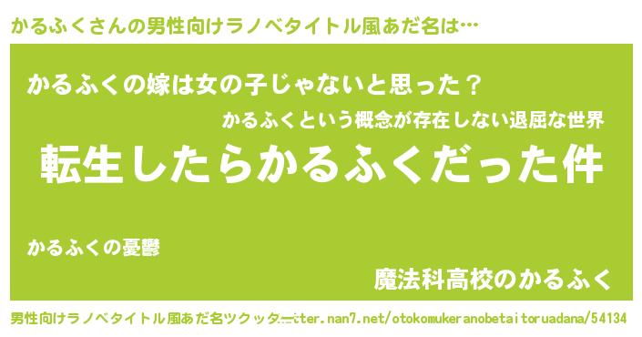 | 女子向けラノベタイトル風あだ名 | 『かるふくの玉の輿計画!』 |