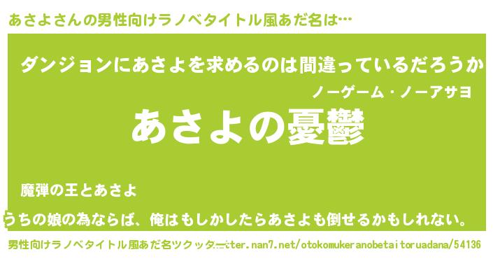 | 女子向けラノベタイトル風あだ名 | 『(仮)あさよのやんごとなき事情』 |
