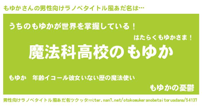 | 欧米人風あだ名 | 『ケンブリッジもゆか』『マイケルもゆか』 |