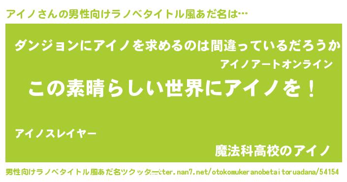 | 胡散臭い通販商品みたいなあだ名 | 『あなたにだけ特別に提供する100年もののヴィンテージワイン…その名も「アイノ」』 |