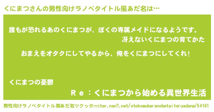 | ヒーロー風カッコイイあだ名 | 『正義の使者くにまつ』『ネオクニマツ』 |