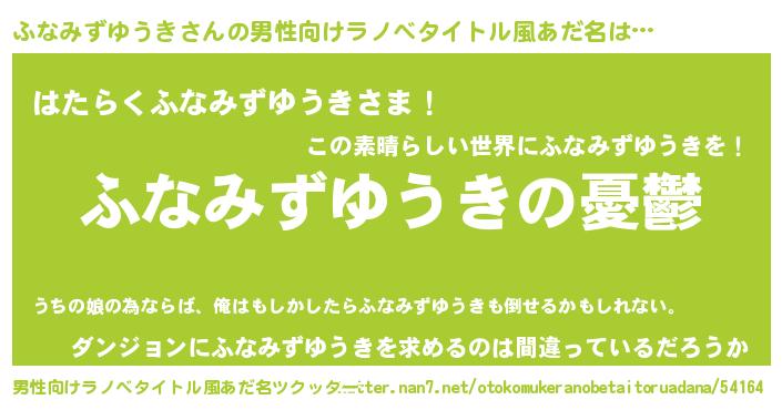 | 女子向けラノベタイトル風あだ名 | 『(仮)ふなみずゆうきのやんごとなき事情』 |