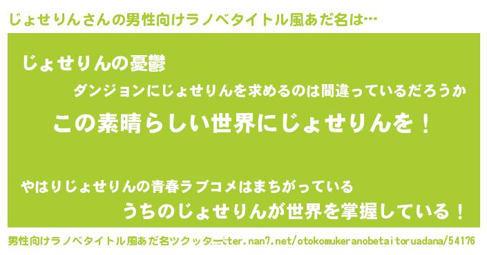 | 意味不明あだ名 | 『住所不定無職じょせりん(11歳)』 |