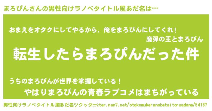 | 意味不明あだ名 | 『なめこ科まろぴん属』『自称まろぴん』 |