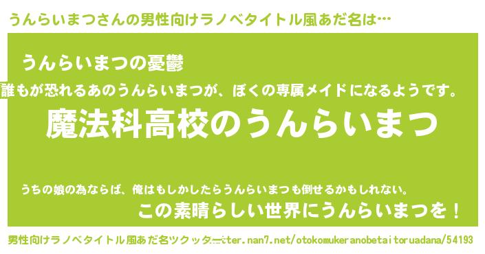| 胡散臭い通販商品みたいなあだ名 | 『ガンによく効く高麗人参…その名も「うんらいまつ」』 |