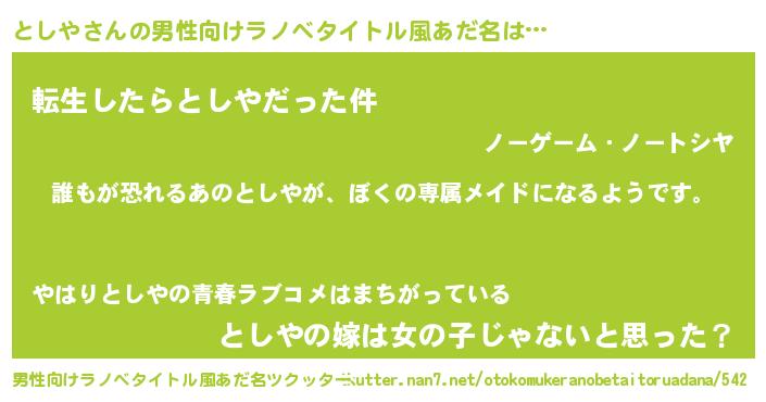 | ヒーロー風カッコイイあだ名 | 『ネオトシヤ』『魔戒騎士トシ』 |