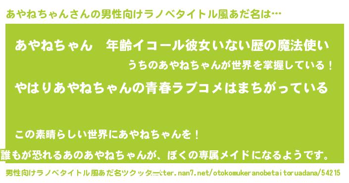 | 意味不明あだ名 | 『あやねちゃんフォーエバー』 |