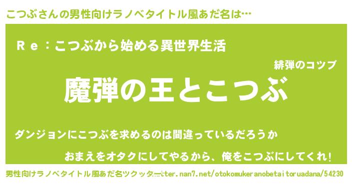 | 女子向けラノベタイトル風あだ名 | 『乙女ゲームの破滅フラグしかない悪役こつぶに転生してしまった…』 |
