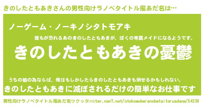 | 胡散臭い通販商品みたいなあだ名 | 『必ず成功するブレスレット…その名も「きのしたともあき」』 |