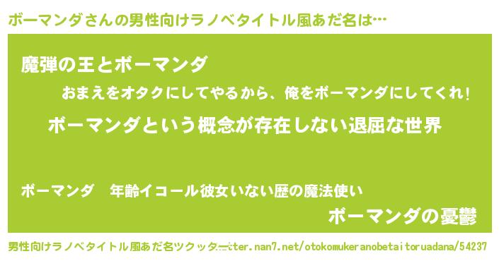 | 胡散臭い通販商品みたいなあだ名 | 『来世でも幸せになれる水素水…その名も「ボーマンダ」』 |