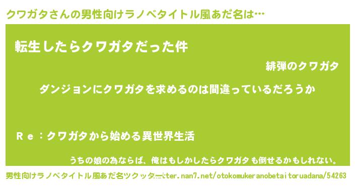| 女子向けラノベタイトル風あだ名 | 『クワガタは平凡を望む』『闇のクワガタ』 |