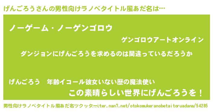 | ヒーロー風カッコイイあだ名 | 『黄金騎士ゲン』『正義の使者げんごろう』 |