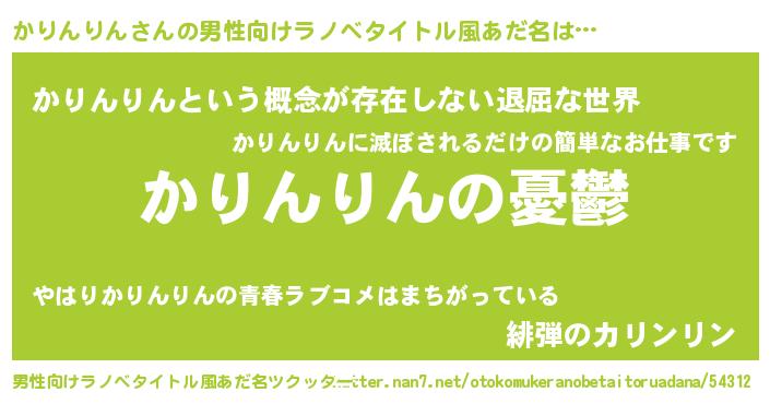 | 胡散臭い通販商品みたいなあだ名 | 『必ず成功する霊験あらたかなお札…その名も「かりんりん」』 |
