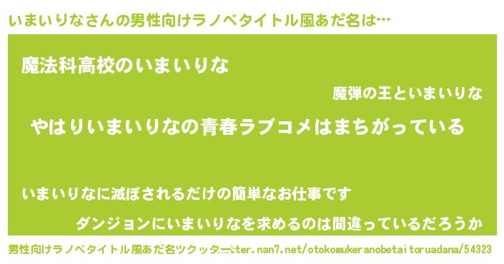 | 女子向けラノベタイトル風あだ名 | 『いまいりなの雑貨屋さん』 |