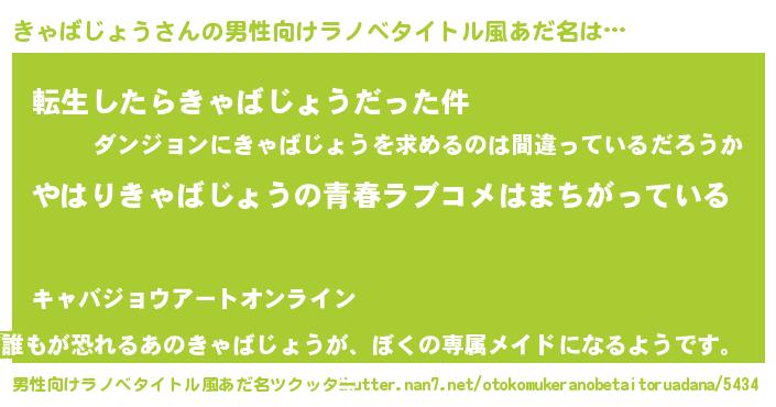 | ファンタジー風あだ名 | 『エターナルキャバジョウー』 |