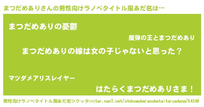 | 女子向けラノベタイトル風あだ名 | 『まつだめありの卵を拾いまして』 |