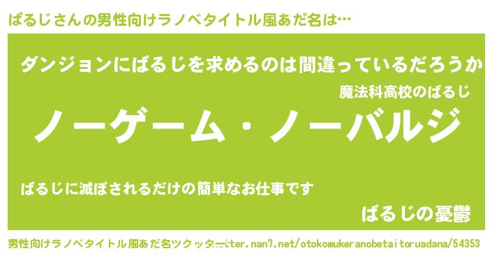 | 伝説のあだ名 | 『救世主となる錬金術士ばるじ』 |
