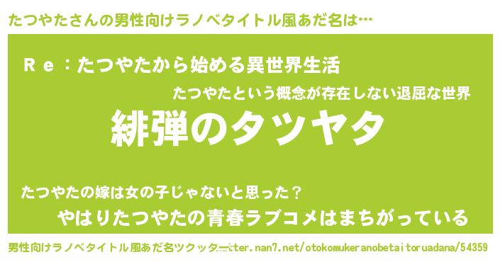 | 女子向けラノベタイトル風あだ名 | 『シンデレラたつやた家の靴箱館』 |