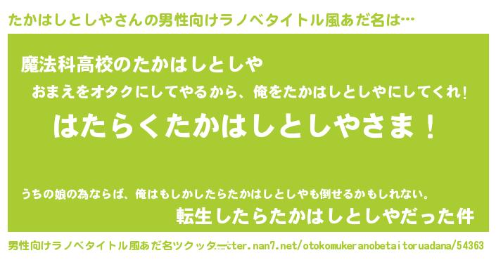 | ヒーロー風カッコイイあだ名 | 『超時空戦士タカハシトシヤ』 |