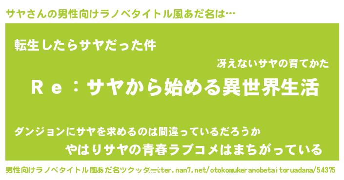 | 女子向けラノベタイトル風あだ名 | 『サヤストレイドッグス』 |