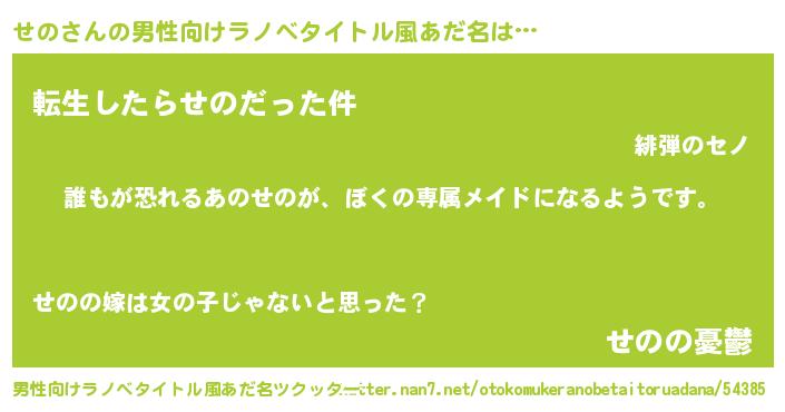 | 女子向けラノベタイトル風あだ名 | 『異世界でカフェせのを開店しました。』 |