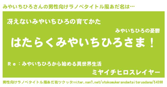 | ヒーロー風カッコイイあだ名 | 『スーパーミヤイチヒロ』『仮面ミヤダー』 |