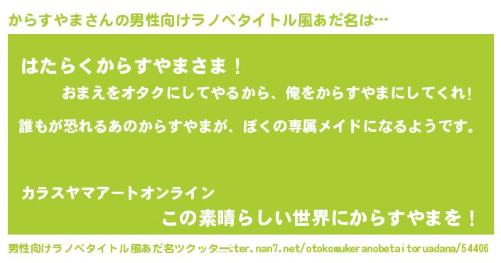 | 女子向けラノベタイトル風あだ名 | 『異世界でカフェからすやまを開店しました。』 |