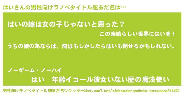 | 女子向けラノベタイトル風あだ名 | 『はいの婚約者』『はい様がみてる』 |