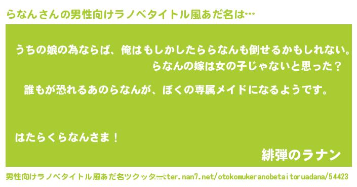 | 女子向けラノベタイトル風あだ名 | 『らなんの契約王妃』『らなんの婚約者』 |