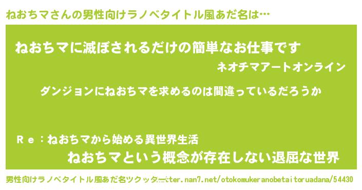 ねおちマさんの男性向けラノベタイトル風あだ名をツクッター!