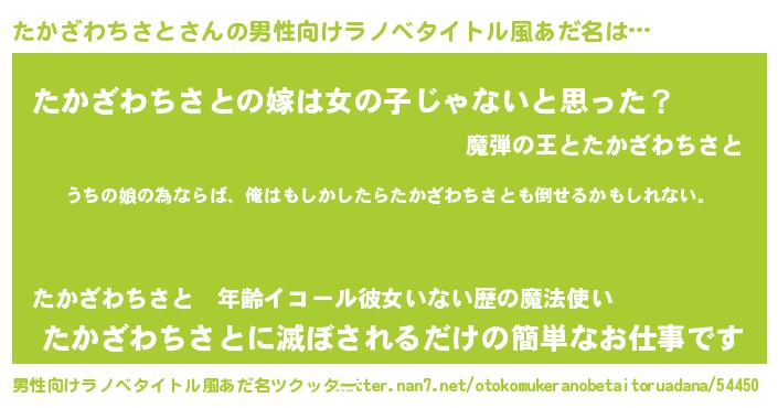 | 女子向けラノベタイトル風あだ名 | 『たかざわちさとの婚約者』 |