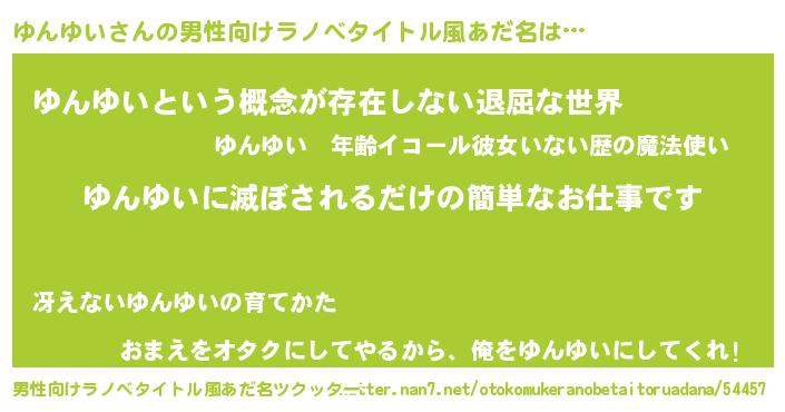 | ヘコむあだ名 | 『ゆんゆい(震え声)』『ゆんにゅー』 |