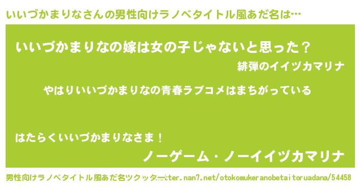 | 女子向けラノベタイトル風あだ名 | 『いいづかまりなの雑貨屋さん』 |