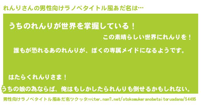 | ヘコむあだ名 | 『れんり(爆)』『レバニラ』『れんお』 |