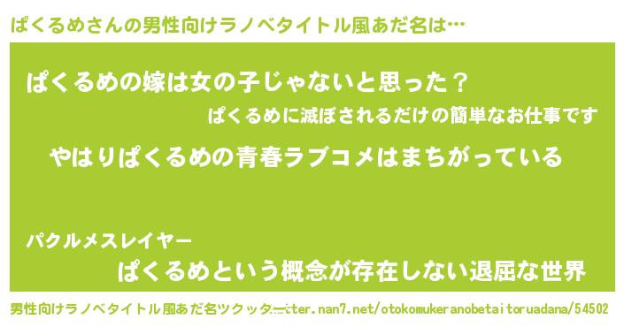 | 女子向けラノベタイトル風あだ名 | 『ぱくるめ伯爵の花嫁』 |