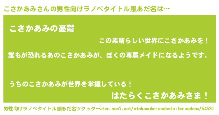 | ヘコむあだ名 | 『こさかあみ(震え声)』『こさもー』 |