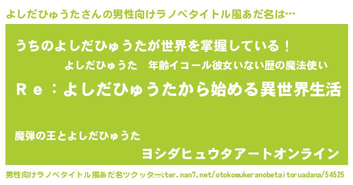 | 女子向けラノベタイトル風あだ名 | 『闇のよしだひゅうた』 |
